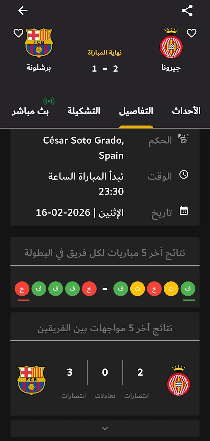 5. الإشعارات الذكية📌 يرسل لك التطبيق إشعارات وتنبيهات قبل بدء المباريات الهامة لتذكيرك بالمواعيد.